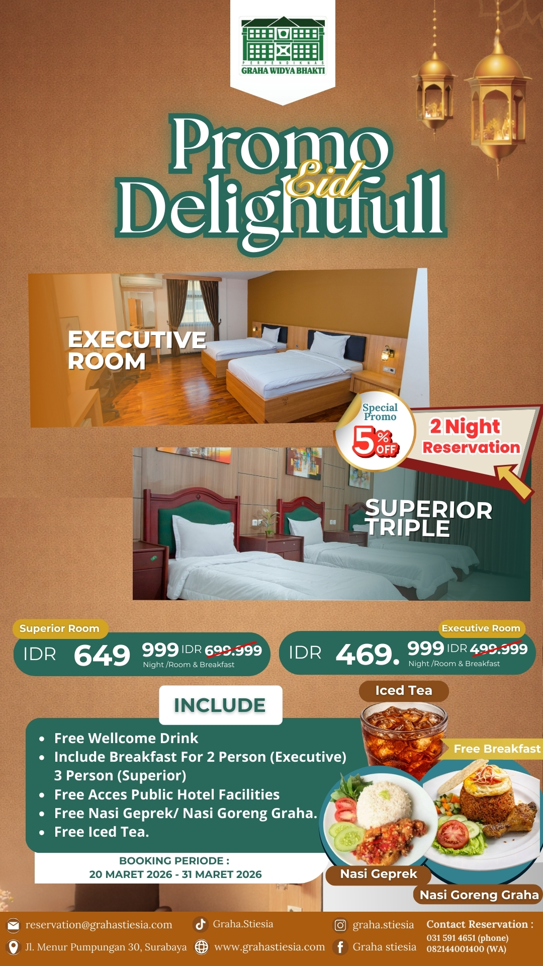 Promo Eid Delightfull – Graha Widya BhaktiRp 469.999,00 Rp 499.999,00Nikmati momen liburan yang lebih nyaman dengan promo spesial dari kami! 🛏 Executive Room💰 IDR